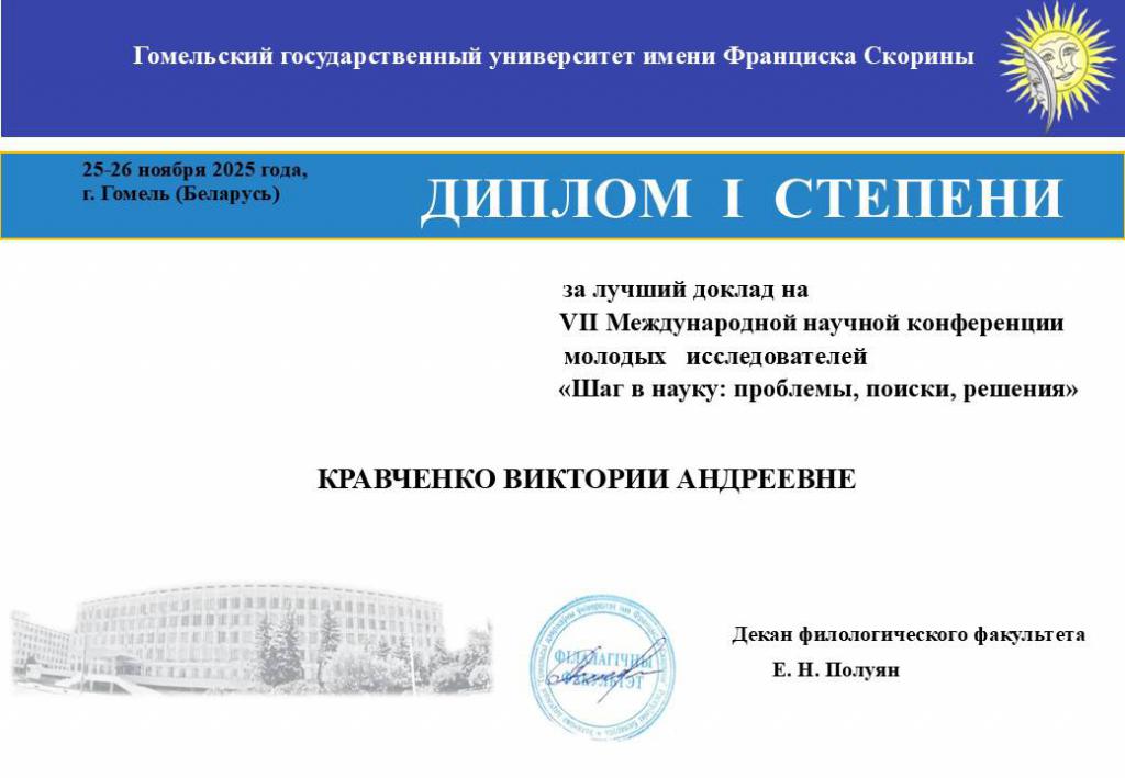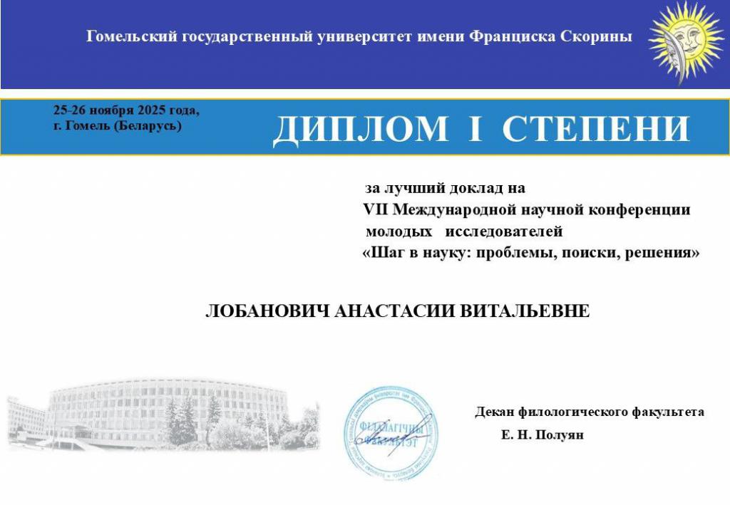 25 ноября уже в седьмой раз на филологическом факультете состоялась Международная научная конференция молодых исследователей «Шаг в науку: проблемы, поиски, решения». Ежегодно организаторами конференции выступает кафедра русского, общего и славянского языкознания ГГУ имени Ф. Скорины совместно с коллегами из Магнитогорского государственного технического университета имени Г. И. Носова. В этом году с докладами выступили более ста участников из Беларуси и России, чьи работы легли в основу выпуска «Молодёжного филологического вестника – 2025» (доступен для скачивания в репозитории ГГУ по ссылке: https://clck.ru/3QXFvV).